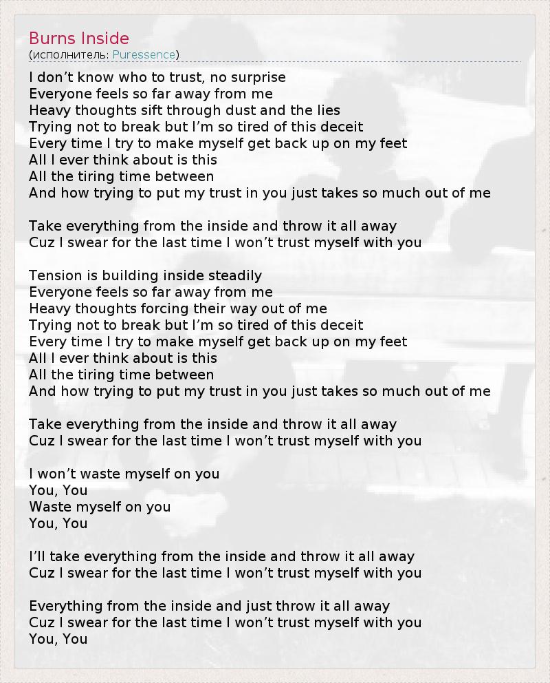 А как ты думаешь, о чем песня "Burns Inside" ?