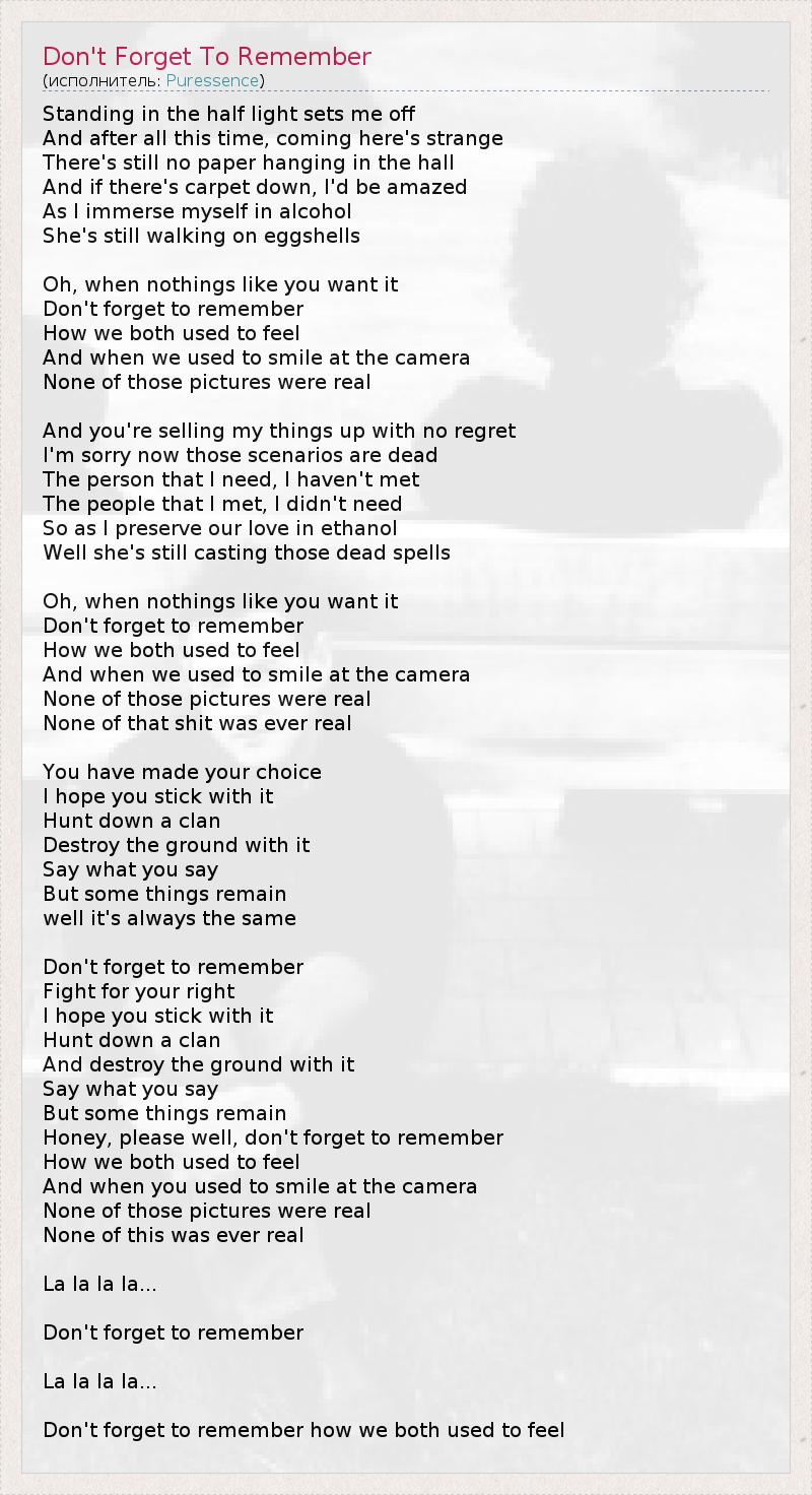 А как ты думаешь, о чем песня "Don't Forget To Remember" ?