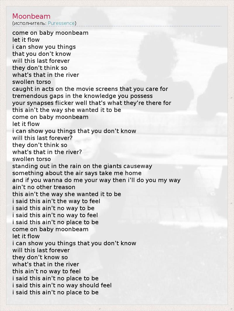 А как ты думаешь, о чем песня "Moonbeam" ?