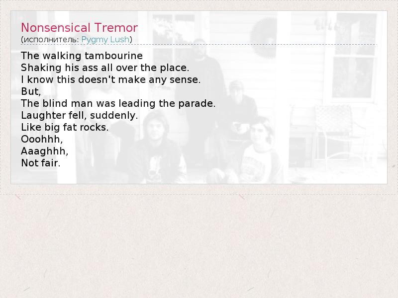 А как ты думаешь, о чем песня "Nonsensical Tremor" ?
