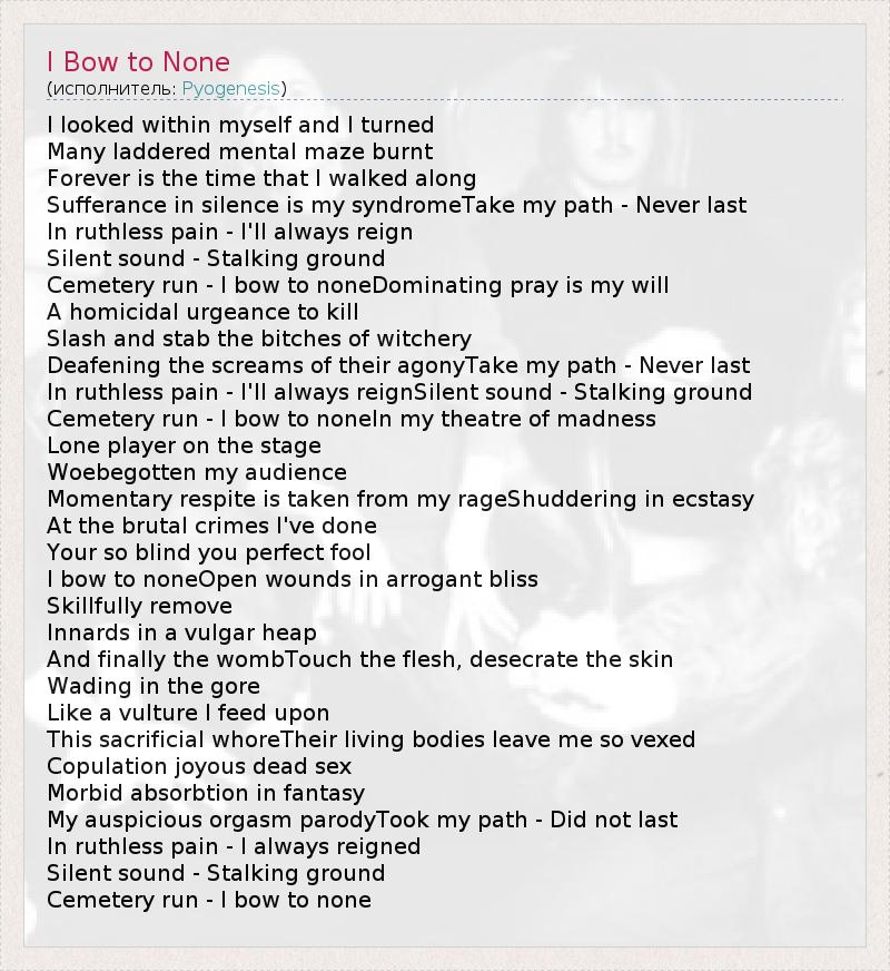 А как ты думаешь, о чем песня "I Bow to None" ?