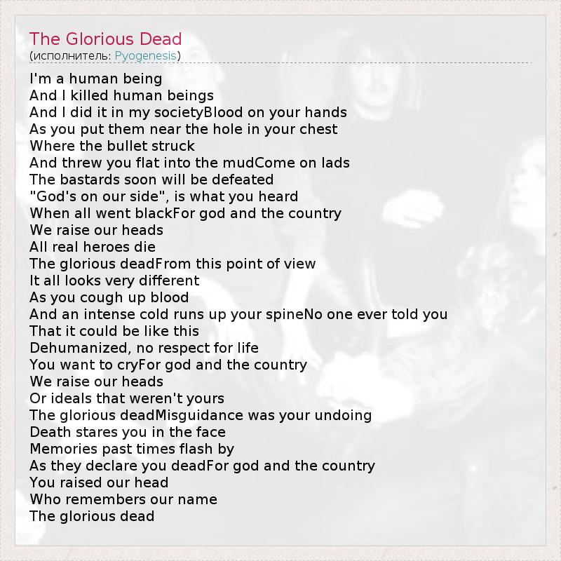 А как ты думаешь, о чем песня "The Glorious Dead" ?