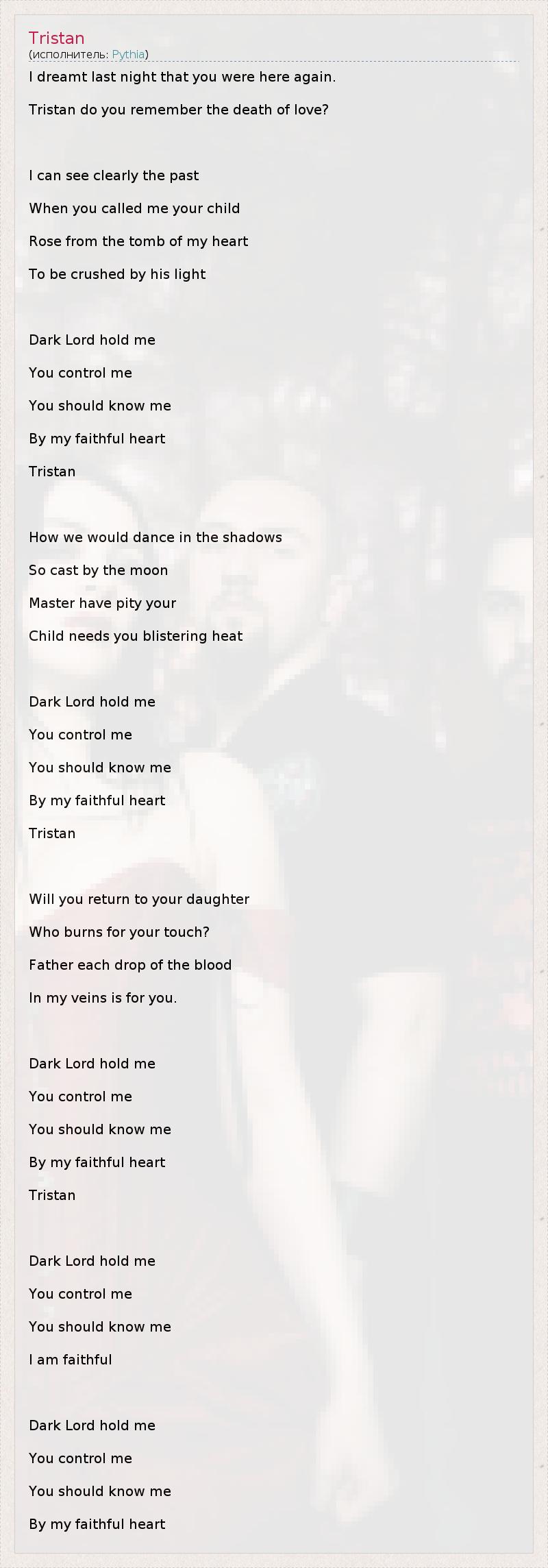 Это интересно:Pythia (Пифия) - группа из Лондона, Англия. Была основана в 2007 году. Стиль группы — смесь symphonic, gothic и power metal. На их творчество оказали влияние Children of Bodom, Stratovarius, Sonata Arctica, Nightwish, Mediaeval Baebes, Paradise Lost, классическая музыка и готическая литература. Вокалистка коллектива Эмили Элис — классическая певица, композитор и участник проектов в стилях кельтики, средневековой музыки и эмбиента. Своё название... продолжение