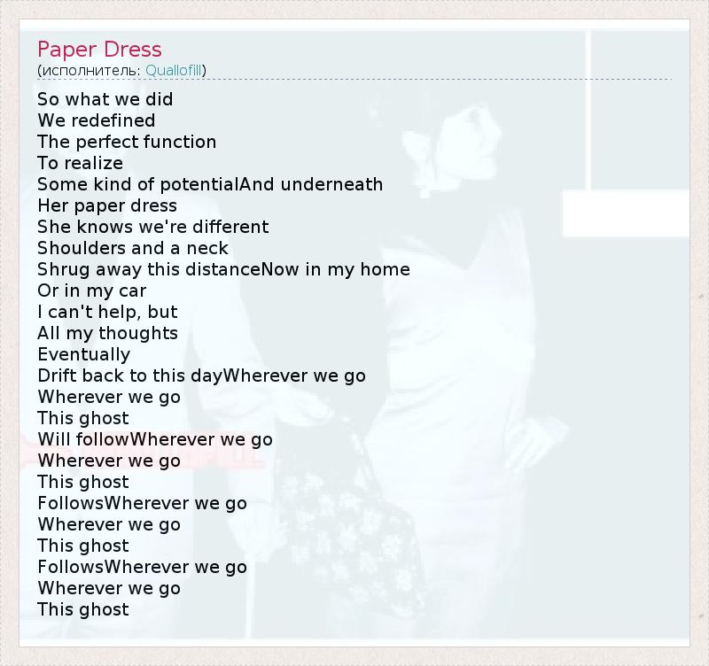 А как ты думаешь, о чем песня "Paper Dress" ?