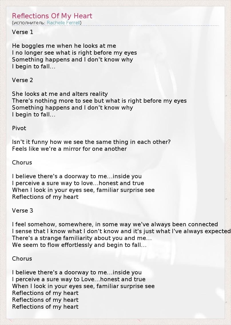 А как ты думаешь, о чем песня "Reflections Of My Heart" ?