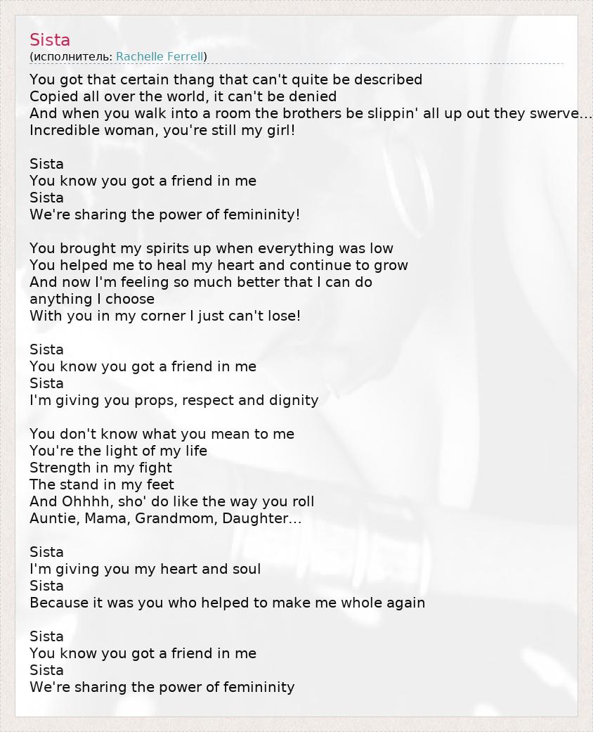 А как ты думаешь, о чем песня "Sista" ?