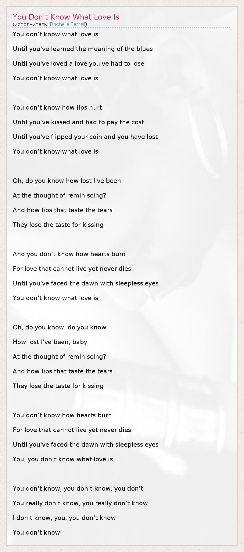 А как ты думаешь, о чем песня "You Don't Know What Love Is" ?