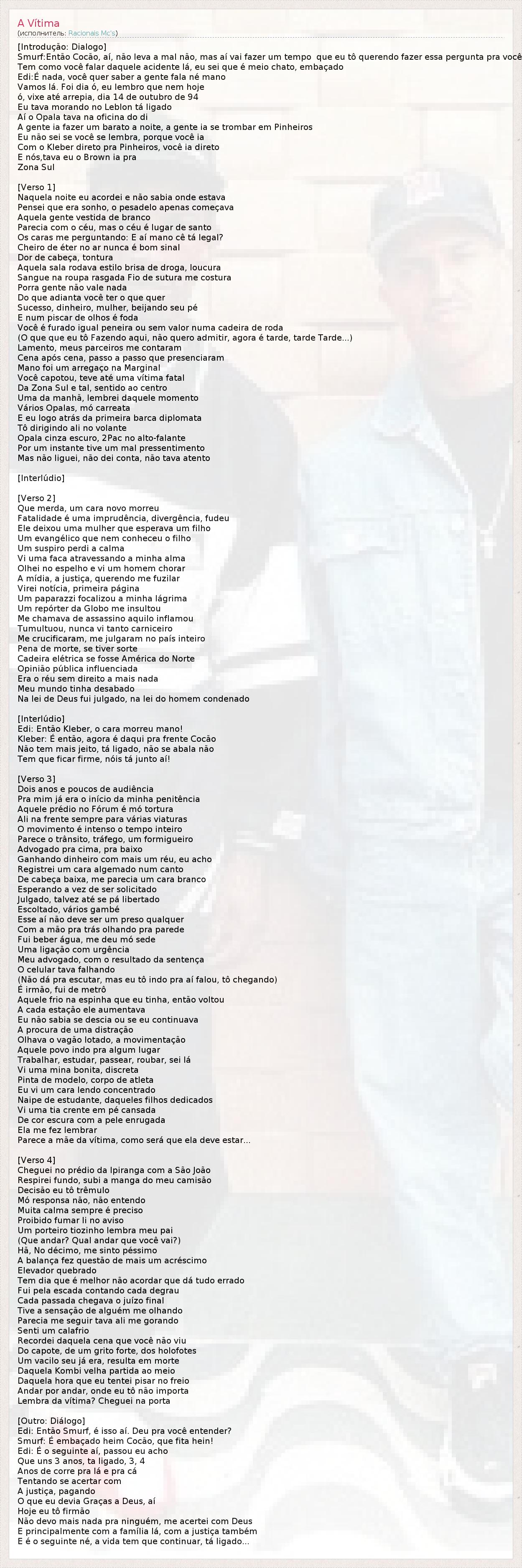 Это интересно:Участники группы Mano Brown, Edi Rock, Ice Blue & DJ KL Jay - выходцы из фавел, располагающихся на окраинах Сан-Паулу, начали выступать в 1980-х годах.В 1988 году была сделана первая запись, вошедшая в сборник "Consciência Black".В 1990 году вышел их первый альбом "Holocausto Urbano".Альбом "Sobrevivendo no Inferno", выпущенный в 1997 году, принес группе достаточно широкую известность (тираж более 500 000 дисков).Тем... продолжение