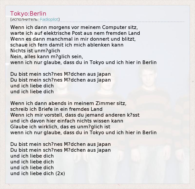 А как ты думаешь, о чем песня "Tokyo:Berlin" ?