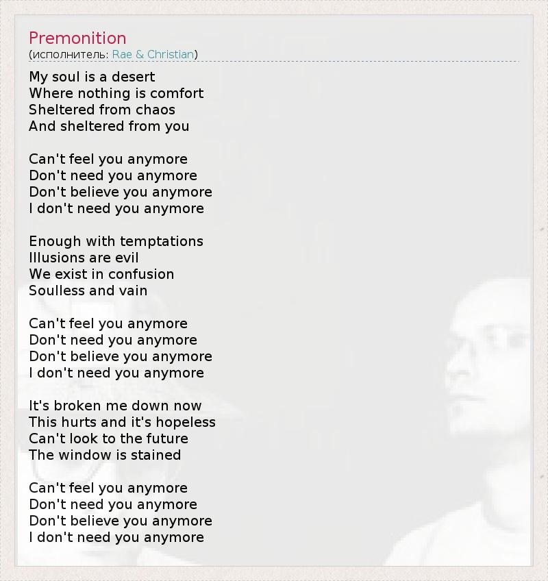 А как ты думаешь, о чем песня "Premonition" ?