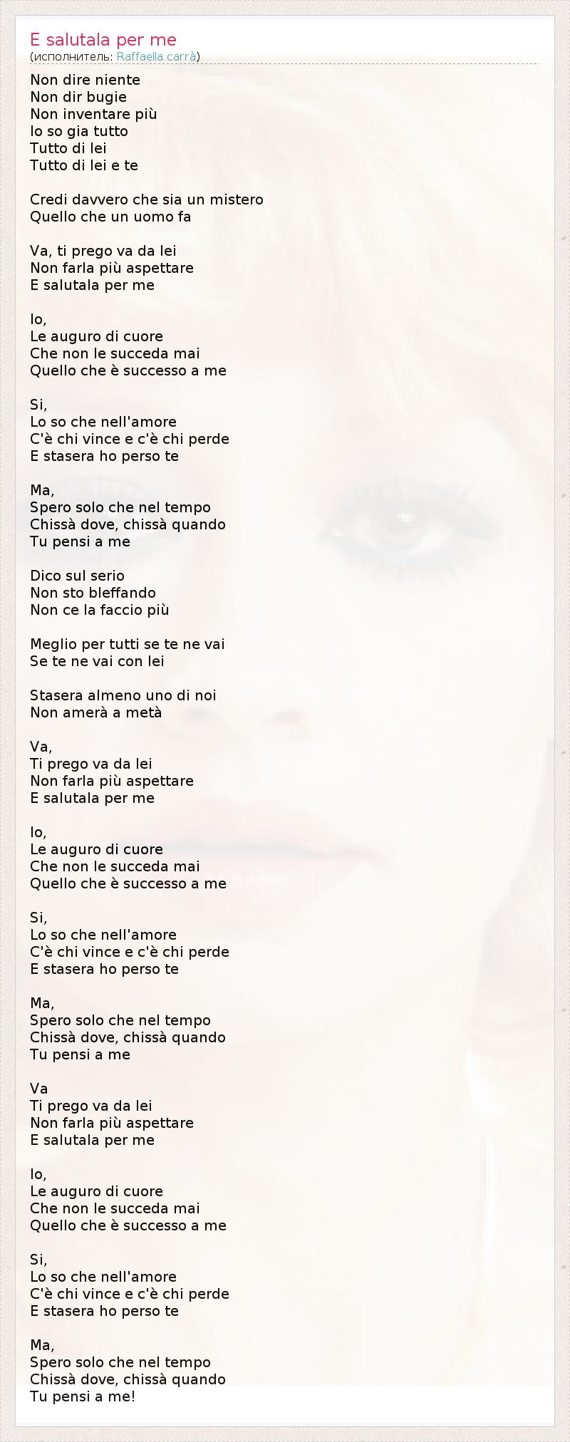 А как ты думаешь, о чем песня "E salutala per me" ?