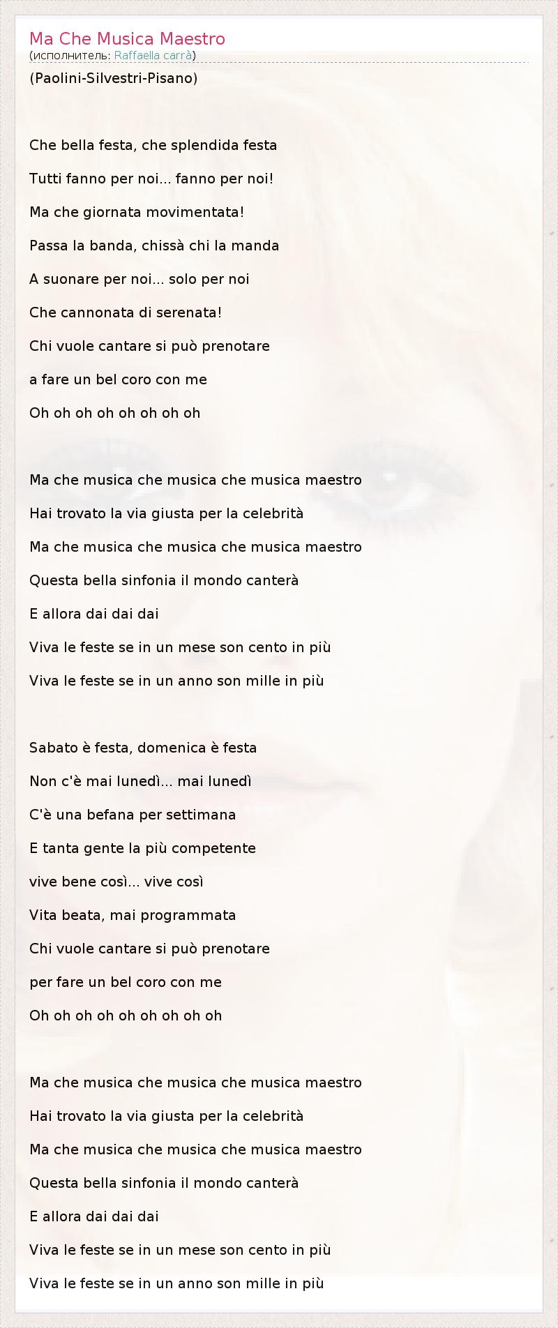 А как ты думаешь, о чем песня "Ma Che Musica Maestro" ?