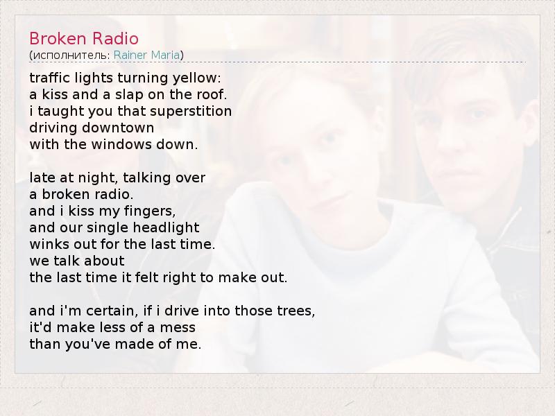 А как ты думаешь, о чем песня "Broken Radio" ?