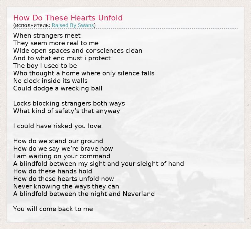 А как ты думаешь, о чем песня "How Do These Hearts Unfold" ?