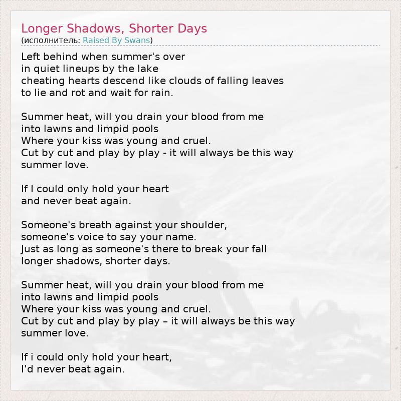 ГлавнаяИсполнителиRaised By SwansLonger Shadows, Shorter Days