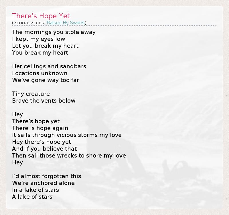 А как ты думаешь, о чем песня "There's Hope Yet" ?
