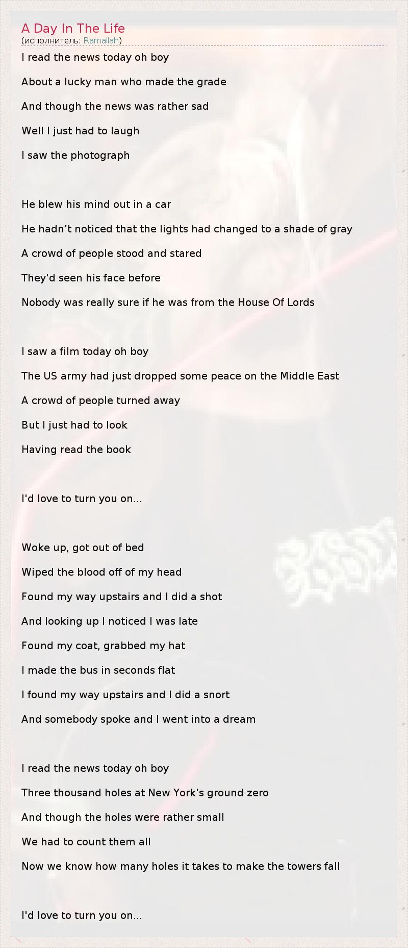 А как ты думаешь, о чем песня "A Day In The Life" ?