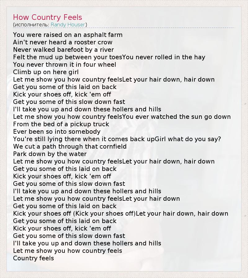 А как ты думаешь, о чем песня "How Country Feels" ?