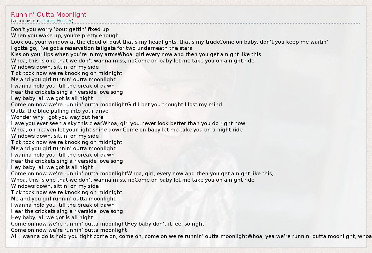 ГлавнаяИсполнителиRandy HouserRunnin' Outta Moonlight