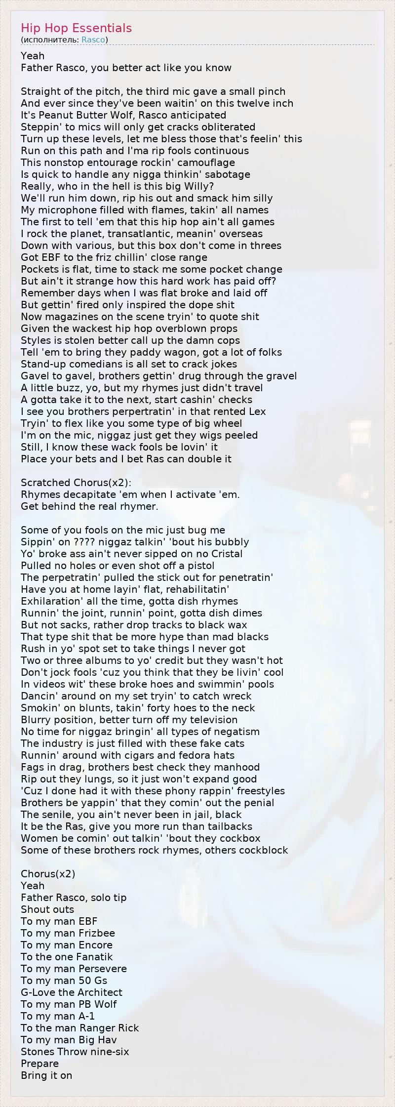 А как ты думаешь, о чем песня "Hip Hop Essentials" ?