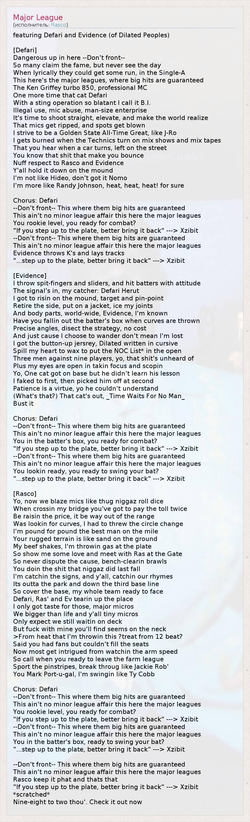 А как ты думаешь, о чем песня "Major League" ?