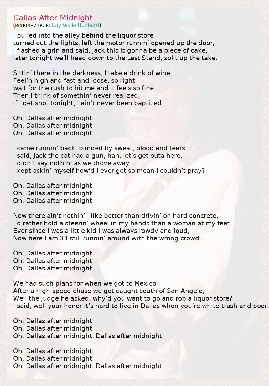 А как ты думаешь, о чем песня "Dallas After Midnight" ?