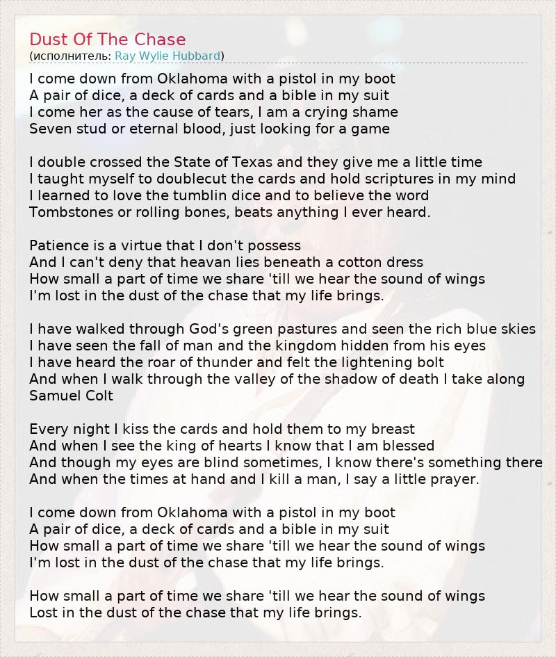 А как ты думаешь, о чем песня "Dust Of The Chase" ?