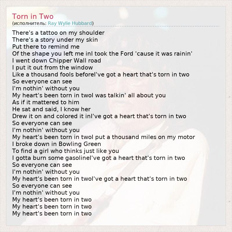 А как ты думаешь, о чем песня "Torn in Two" ?