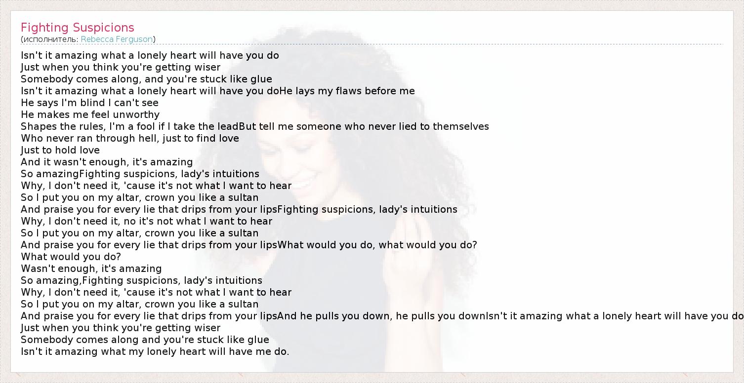 А как ты думаешь, о чем песня "Fighting Suspicions" ?