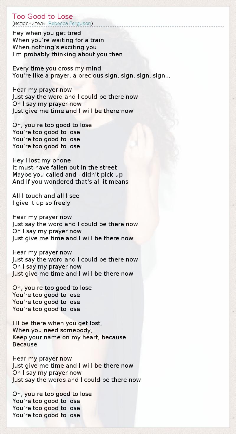 А как ты думаешь, о чем песня "Too Good to Lose" ?