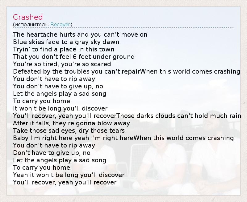 Defeated by the troubles you can't repairWhen this world comes crashing