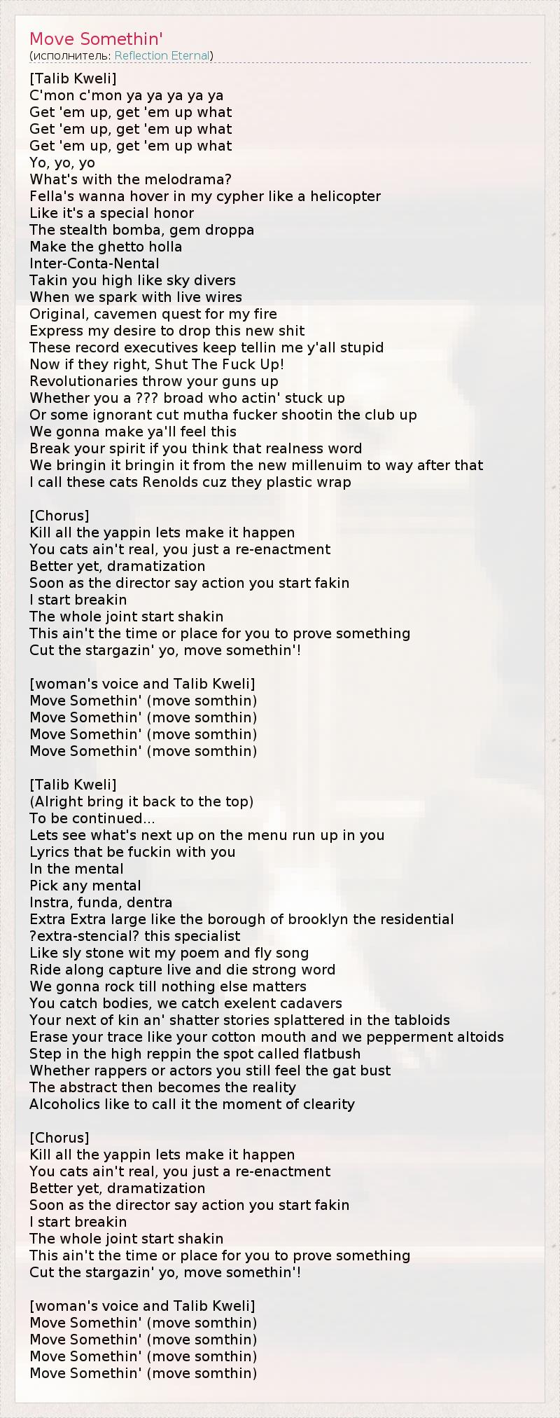 А как ты думаешь, о чем песня "Move Somethin'" ?