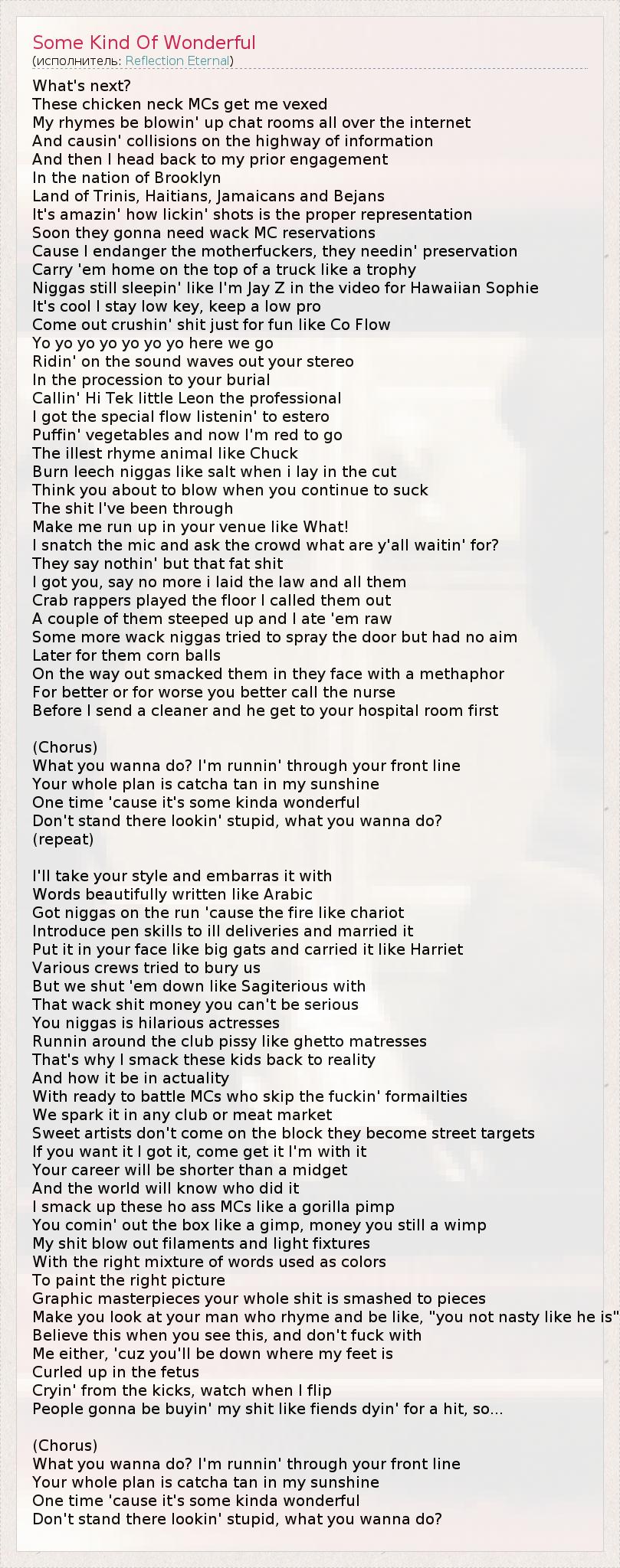 А как ты думаешь, о чем песня "Some Kind Of Wonderful" ?