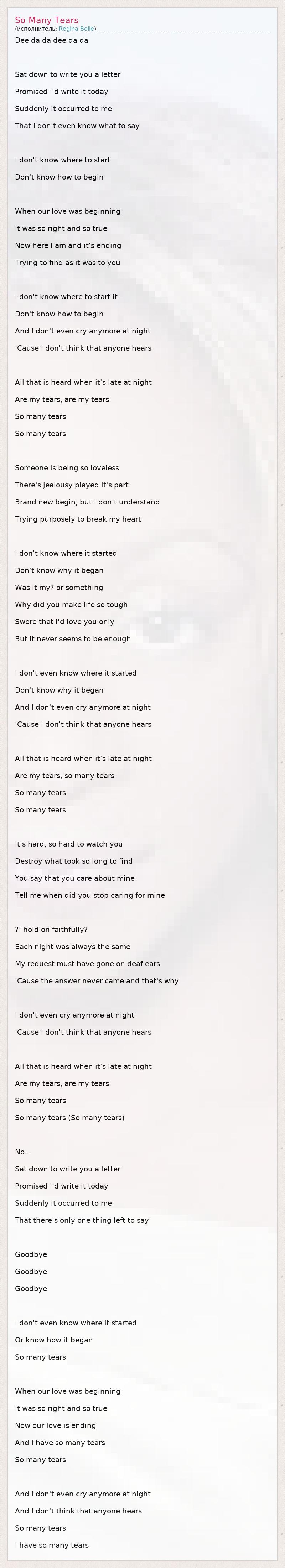 А как ты думаешь, о чем песня "So Many Tears" ?