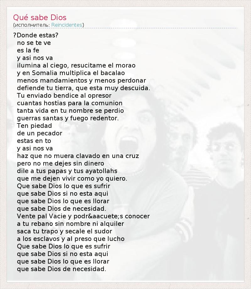А как ты думаешь, о чем песня "Qué sabe Dios" ?