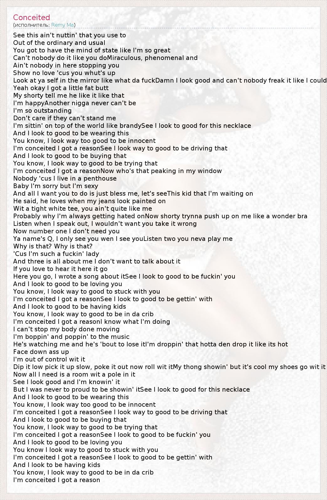 I'm conceited I got a reasonSee I look to good to be gettin' with