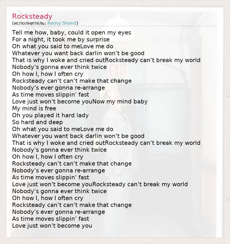 А как ты думаешь, о чем песня "Rocksteady" ?
