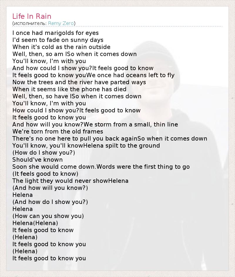 А как ты думаешь, о чем песня "Life In Rain" ?