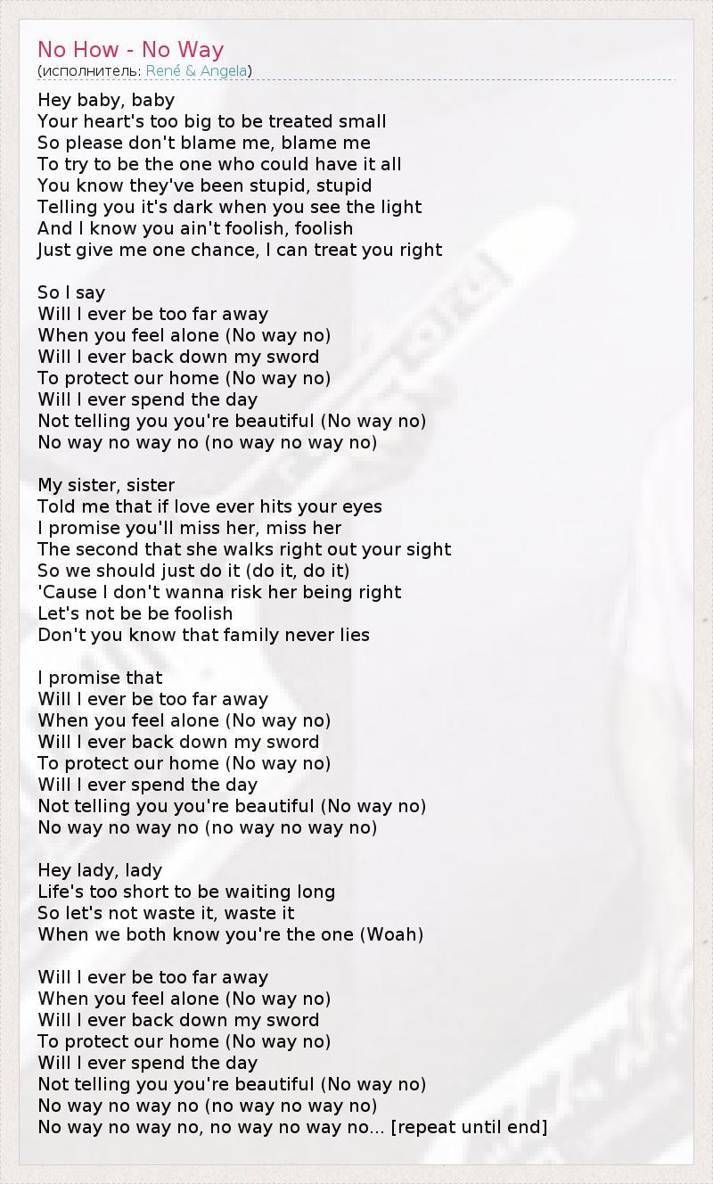 No way no way no, no way no way no... [repeat until end]