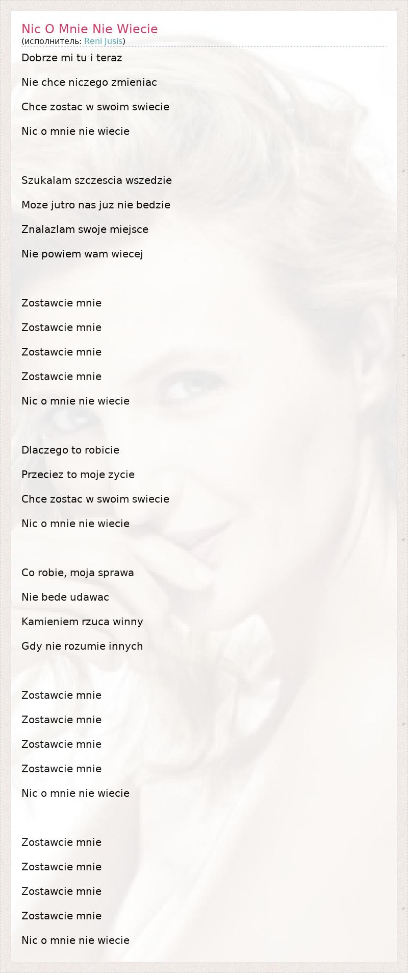 А как ты думаешь, о чем песня "Nic O Mnie Nie Wiecie" ?