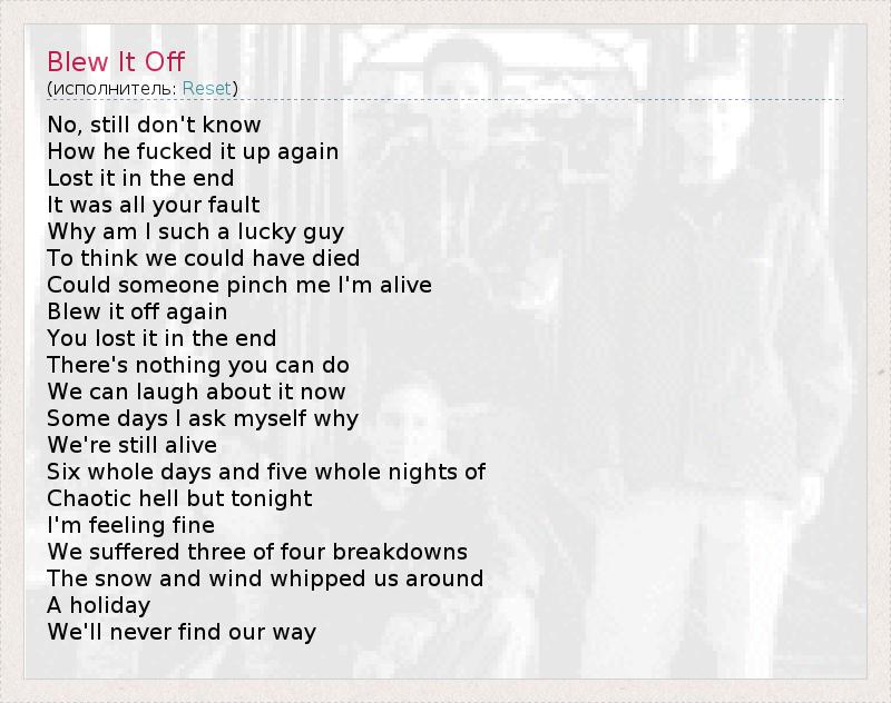 А как ты думаешь, о чем песня "Blew It Off" ?