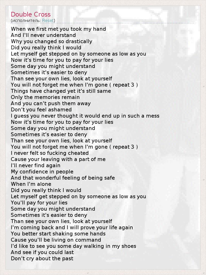 А как ты думаешь, о чем песня "Double Cross" ?