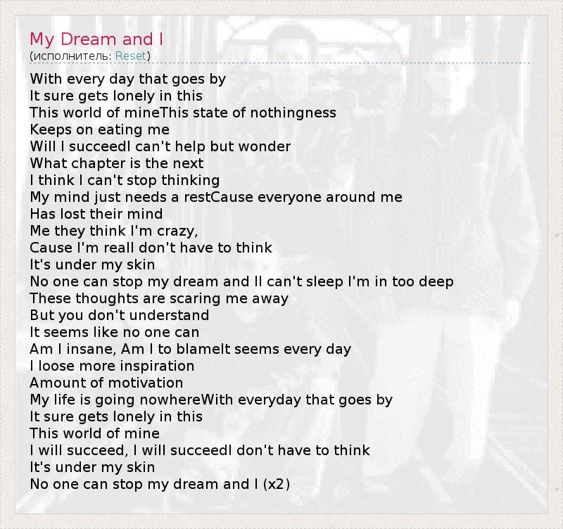 А как ты думаешь, о чем песня "My Dream and I" ?