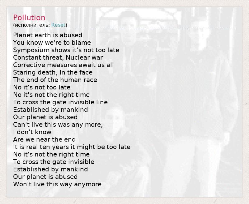 А как ты думаешь, о чем песня "Pollution" ?