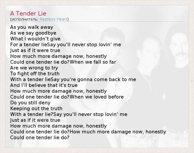 А как ты думаешь, о чем песня "A Tender Lie" ?