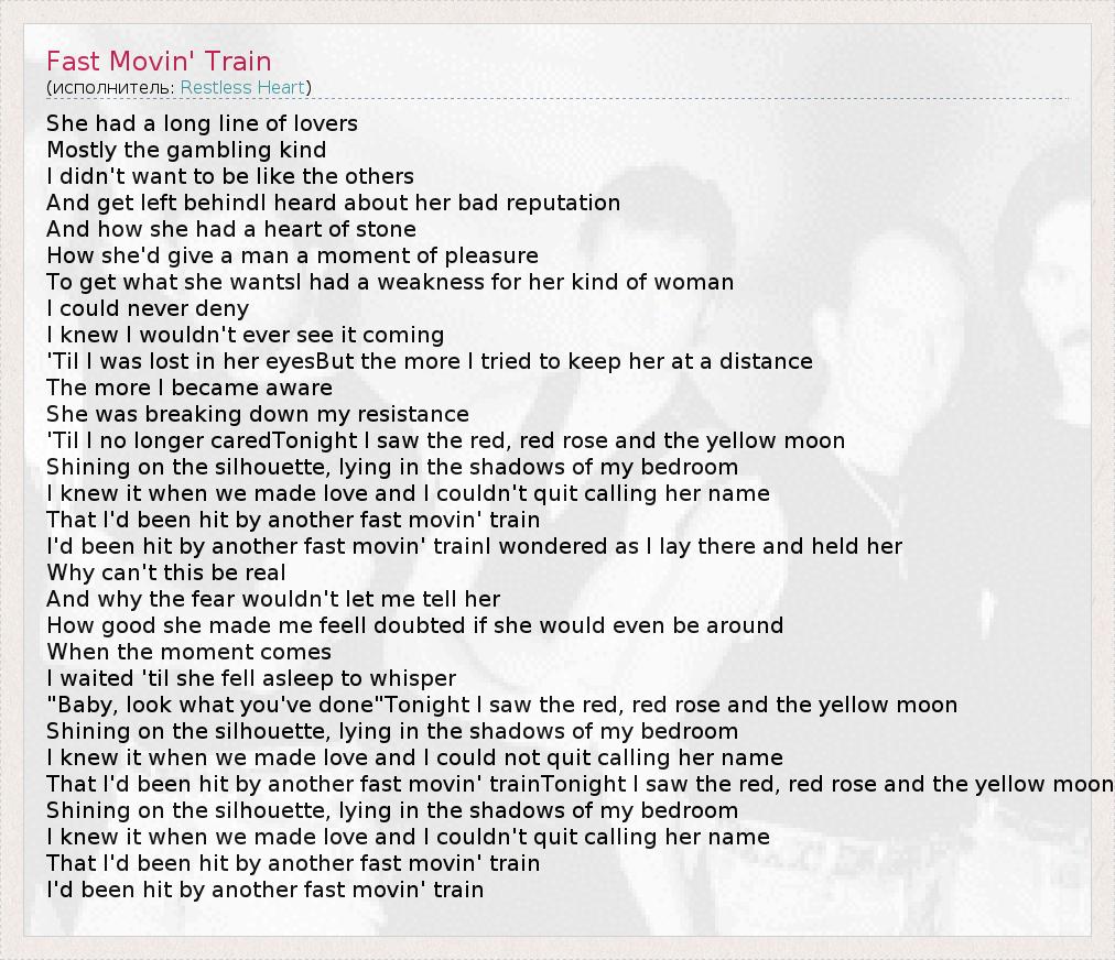 А как ты думаешь, о чем песня "Fast Movin' Train" ?
