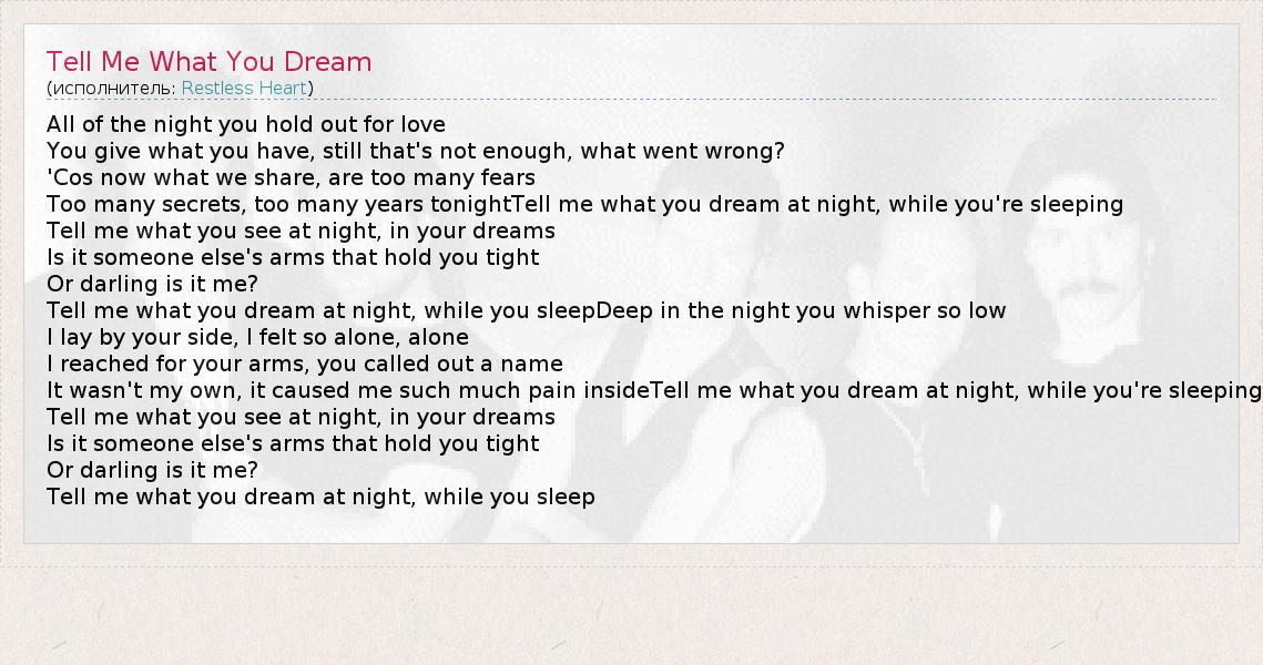 А как ты думаешь, о чем песня "Tell Me What You Dream" ?