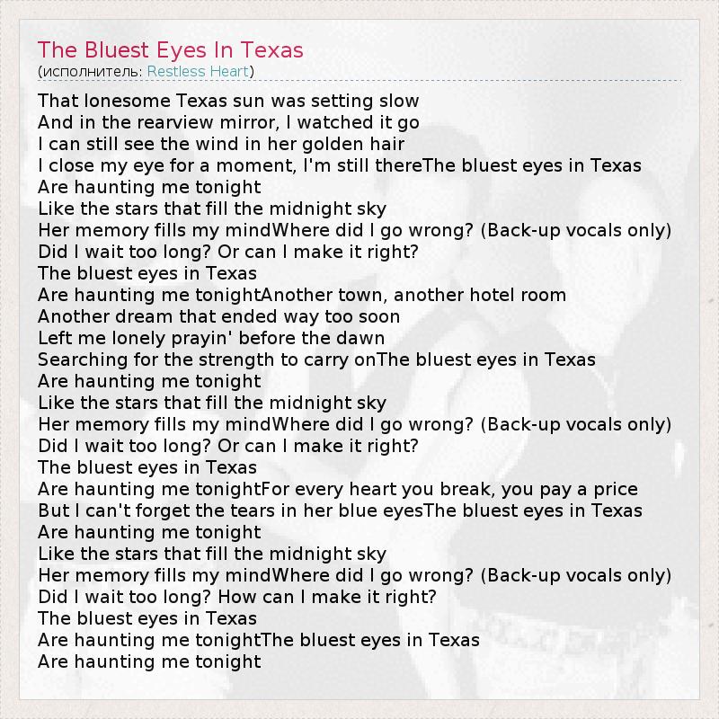 А как ты думаешь, о чем песня "The Bluest Eyes In Texas" ?