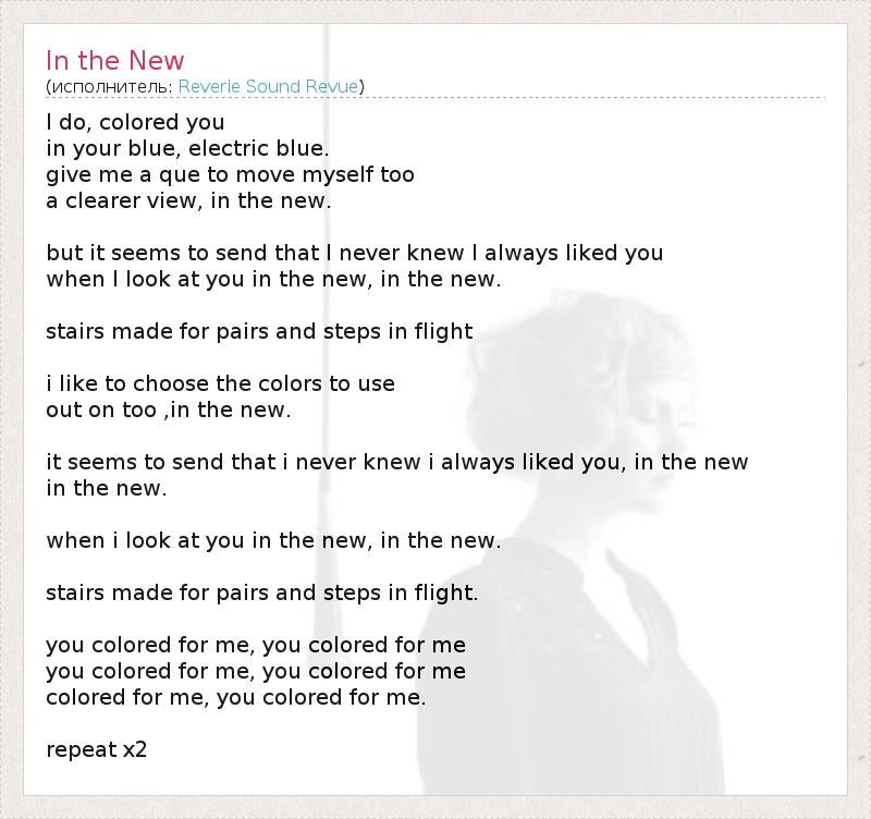 Это интересно:Reverie Sound Revue is a Canadian indie pop group based out of three major Canadian cities. The group originally formed in Calgary in January 2002 and they disbanded in January 2004 but reformed in September 2005.Singer Lisa Lobsinger has recorded and toured with Broken Social Scene while not working with RSR. In November 2007, the group completed the recording of 11 songs for their debut album, but mentioned they have no plans to play live because of their distances.The band's first full length record was released on June 23, 2009.