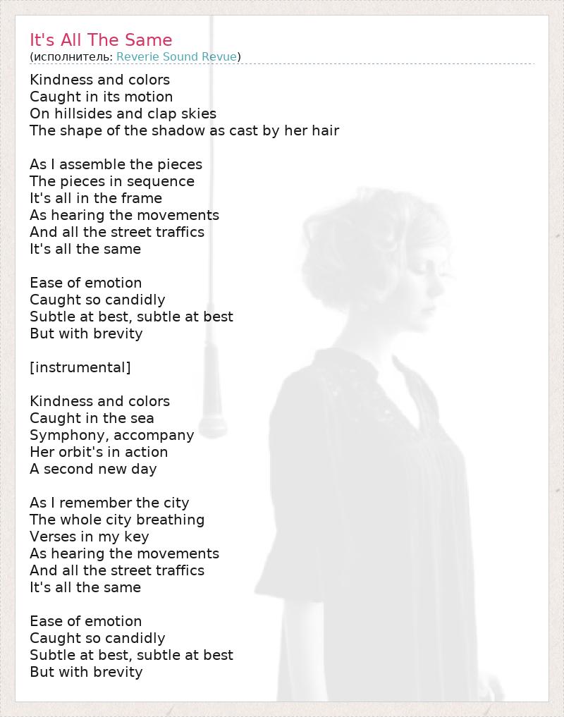 А как ты думаешь, о чем песня "It's All The Same" ?